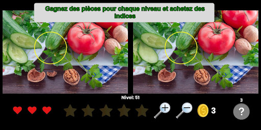 Trouvez 5 différences dans chaque niveau, gagnez des pièces en terminant les niveaux et utilisez-les pour acheter des indices.