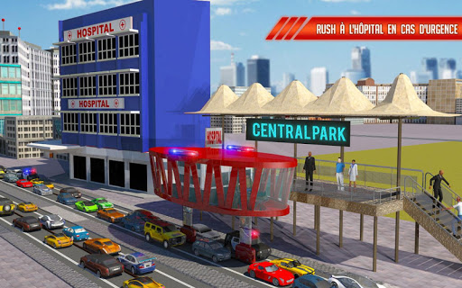 Le bus surélevé est alimenté par des volants fermés le matin et continuerait à être alimenté toute la journée à partir de l'énergie fournie par les panneaux solaires montés sur les toits de la voiture de sauvetage 911. Les cosses sont surélevées sur des jambes extensibles qui peuvent à la fois se contracter et grossir. Ils peuvent passer sous les ponts et les passages supérieurs des véhicules avec facilité. Conduire une ambulance de secours incendie au-dessus de la circulation sans collision pour atteindre la destination à temps. Cet autobus de transport gyroscopique moderne roule à 12 pieds au-dessus du niveau du sol, de sorte que la circulation de la ville coule en dessous sans collisions. Cette future innovation est conçue pour un monde au rythme rapide pour contrer le problème des embouteillages urbains et atteindre au lieu d'incident très rapidement avant l'ambulance de secours incendie. Ce véhicule moderne gigantesque a un grand compartiment et est équipé d'un équipement de pompier américain et d'une ambulance municipale. Profitez de son premier jeu de simulation de voiture de sauvetage gyroscopique avec un gameplay stimulant et unique. Oubliez les problèmes de circulation sur les routes achalandées lorsque vous pouvez conduire le bus aérien élevé du sol pour sauver des gens. Cette ambulance de secours élevée est l'avenir du service d'urgence dans les grandes villes à travers le monde comme New York, Paris, Londres, Pékin, Tokyo, Dubaï. La structure en forme de tunnel peut facilement passer par-dessus le camion de pompier et le chauffeur d'ambulance de la ville.