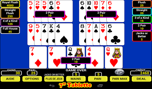 • 7 jeux de vidéo poker à choisir!