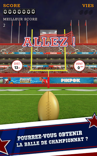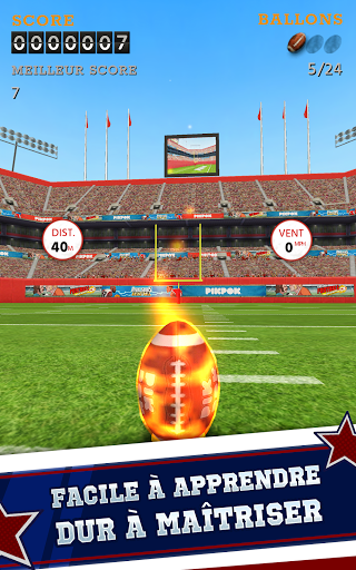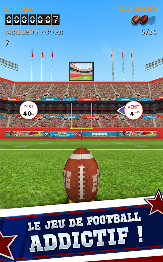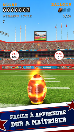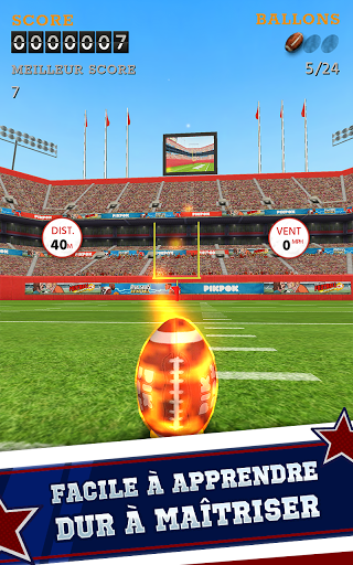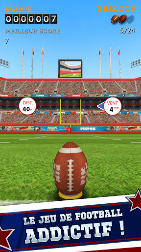 Avec des commandes faciles à prendre en main et des défis difficiles à maitriser, Flick Kick® Field Goal est le jeu de football américain addictif auquel il est impossible d'arrêter de jouer ! Mettez de l'effet dans vos frappes et gagnez des récompenses dans des conditions en évolution constante. Prouvez votre talent dans ce jeu indispensable pour tout fan de football américain !