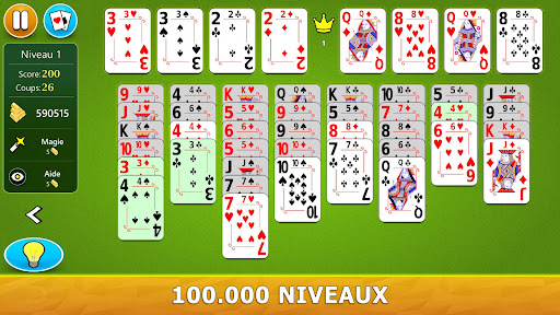 - Le but du jeu est de construire 4 piles de cartes, une par couleur, dans chacune des 4 fondations en haut à droite de l'écran. Chaque pile doit commencer par un As, puis 2, 3, 4, 5, 6, 7, 8, 9, 10, valet, reine et se terminer par un roi.