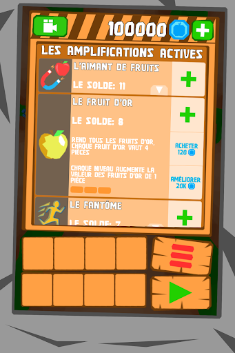 Que faut-il pour devenir le meilleur dans le coureur? Des réflexes rapides ? L'attention? Ce n'est pas suffisant! Dans "Fruits miner", il est tout aussi important de savoir quelles amplifications tu choisis pour le jeu. Tu veux augmenter la vitesse, collecter autant de pièces que possible, passer un chemin plus long - choisis les améliorations nécessaires, les combine, et atteins la cible dans le tunnel des obstacles. Étape par étape améliore tes amplifications pour atteindre de nouveaux pinacles. Débloque de nouveaux héros, et rends le jeu encore plus lumineux.