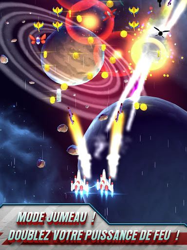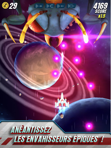 les hordes d'aliens grâce à 4 compétences uniques par vaisseau (laser, tir explosif, mines spatiales, mode fantôme et bien plus encore).