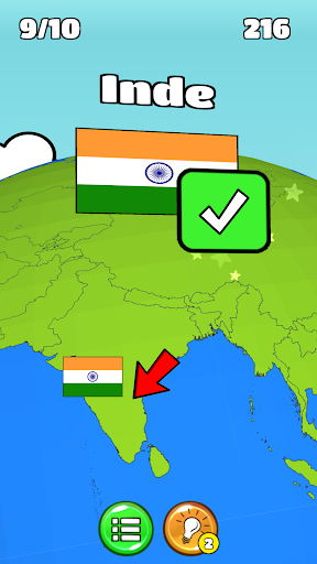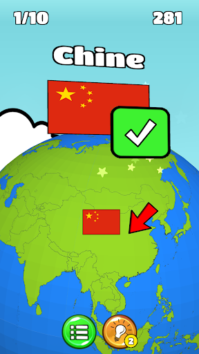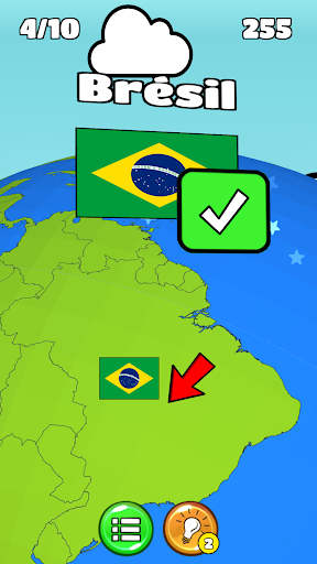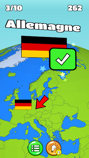 Recherchez le pays sur lequel le jeu pose des questions. Trouvez le bon pays. Si vous êtes rapide et obtenez la bonne réponse, vous obtenez plus de points. Lorsque vous avez terminé un niveau, vous avez accès au niveau suivant.