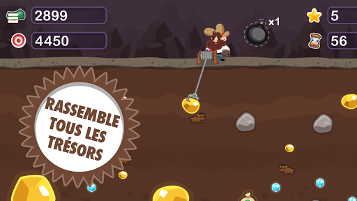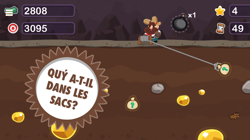 Chaque niveau a le même gameplay: votre crochet bascule de gauche à droite automatiquement et vous devez le libérer en tapotant l'écran pour recueillir l'or et les diamants ou ces petits sacs avec une surprise dans lui.