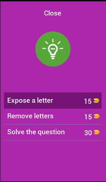 • Hint "Expose a letter" will cost (coins): 15