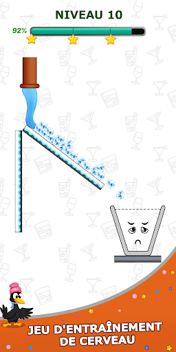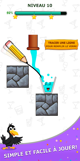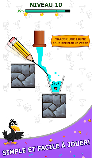 Le corbeau a soif. Tracez une ligne pour remplir le verre d'eau et rendez le corbeau heureux.