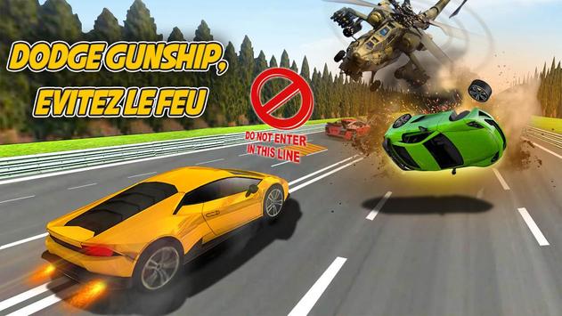 Le Turbo Dérive Voiture Course: Hélicoptère Attaque Simulateur Le jeu vous offre une course de voitures de sport passionnante avec une nouvelle action de conduite de voiture passionnante sur les pistes de l'autoroute sinueuses tout en faisant face aux attaques aériennes lourdes de l'hélicoptère de combat. Préparez-vous à jouer le jeu le plus dangereux et furieux. Survivre aux attaques héliophiles brutales des hélicoptères militaires et atteindre la ligne d'arrivée sans aucun mal. Conduisez les voitures de sport modernes rapides tout en effectuant des acrobaties à la dérive incroyables et utilisez l'action nitro alimentée par l'adrénaline pour battre les rivaux. La caractéristique la plus étonnante de ce jeu Gunship Attaque Voiture Courses Aventure est l'attaque d'un gros hélicoptère militaire sur votre voiture de formule. Donc, course avec prudence et ne pas être détruit par les attaques de missiles Heli de l'hélicoptère de l'hélicoptère de combat pour atteindre le dernier point sûr. Soyez le meilleur pilote et montrez vos talents de drift en réussissant cette incroyable course automobile.
