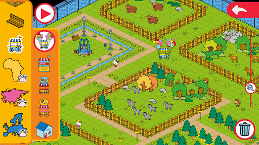 - Construisez votre propre zoo en sélectionnant le terrain, les routes, les personnages et ajoutez vos animaux.