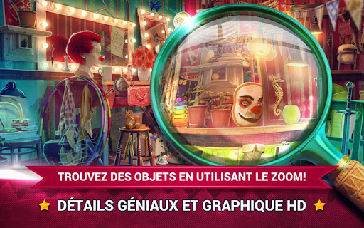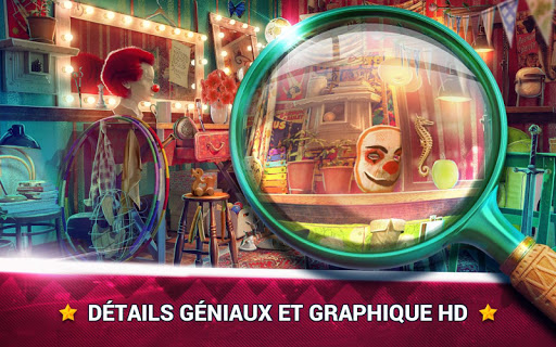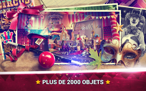 Joignez-vous à la grande société de cirque et trouver des objets cachés dans l'environnement enchanteur! Jouez les meilleurs jeux d'objets cachés enquetes en francais et jeux casse-tête du cirque mystique! Les meilleurs jeux pour la concentration, mémoire et le vocabulaire sont ici! Jeux de objet caché en francais gratuit nouveau pour tous les fans de nouveaux jeux de cirque! Profitez de la visite du cirque et soyez prêt pour une aventure inoubliable!