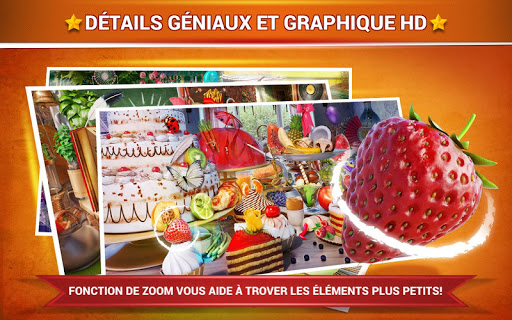 Objets Cachés Nourriture est tout ce dont vous rêviez! Si vous avez aimé nos précédents "jeux d'objets cachés" vous apprécierez sûrement ce "jeu de restaurant"! Recherchez des fruits, des crêpes, des spaghettis et des beignets et profitez de trouver des objets cachés dans les images de la nourriture délicieuse! Téléchargez des nouveaux jeux d'objets cachés gratuitement et passez des heures de plaisir! Passez votre temps de manière créative avec des jeux gratuits de nourriture pour les enfants et les adultes et chercher le "objet caché" le plus délicieux dans l'image! La meilleure chose à propos de ces "jeux de cuisine gratuits" est qu'ils sont adaptés à tout le monde! Jeux alimentaires sans wifi pour tous les chefs et amateurs de nourriture. Si vous êtes à la recherche de jeux de nourriture pour les filles et jeux de "objets de cuisine caché" vous savez quoi faire – téléchargez gratuitement "nouveaux objets cachés" et profitez de jouer avec vos enfants ou avec vos amis. Ce jeu génial d'objets cachés caché vous aidera à réviser le vocabulaire et avoir beaucoup de plaisir! Si vous aimez jouer à des jeux de mystère ce casse-tête est excellant! Devenez un détective de la nourriture, prenez votre loupe et trouver des objets cachés! Téléchargez jeux d'objets cachés gratuits et ne vous inquiétez pas!