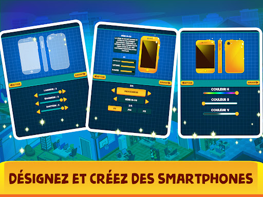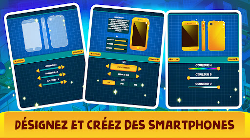 Vous commencez et vous gérez comme un designer en repos de smartphones qui travaille aux smartphones et qui progresse peu à peu et intelligemment en embauchant plus de gens et en faisant plus des gestions opérationnelles de smartphones. Ce jeux-ci est parfait pour ceux qui sont intéressés au commerce de désigner des téléphones portables et ceux qui vont gérer une entreprise et devenir un magnat du commerce des smartphones et créer la meilleure simulation d'histoire d'entreprise de smartphones. Vous pouvez créer et désigner votre propre smartphones, c'est sympa, n'est-ce pas ? C'est mieux que devenir un tuber et diriger l'empire. Vous pouvez gérer votre propre empire de smartphones mieux que le commerce tuber.