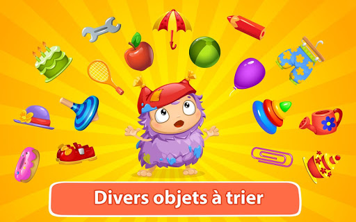 Vos enfants vont adorer Les enfants apprennent à trier, la dernière application de niveau maternelle d’Intellijoy. Les applications d’Intellijoy sont épurées et intuitives, enchantant vos enfants tout en leur enseignant les fondamentaux de l'école maternelle. Vos enfants vont adorer prendre part à ces nombreuses activités de manière autonome. Avec l’aide de Sorty le monstre mignon, les petits apprennent à trier en fonction des catégories suivantes :