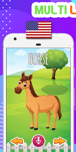 L'application Apprenez les noms et les sons des animaux comprend également la reconnaissance vocale pour former les tout-petits et les enfants à prononcer les bons noms d'animaux.