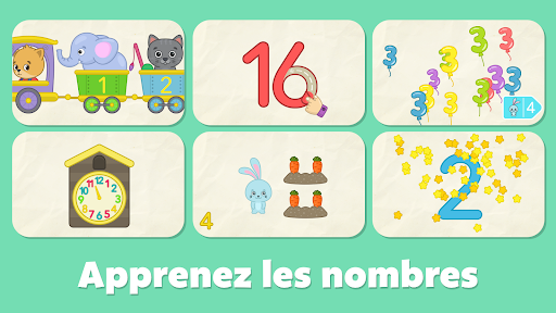 Jeux de nombres pour bébés est le meilleur jeu éducatif pour enfants. En jouant au jeu de nombres, vos bébés peuvent facilement apprendre à compter de 1 à 20, à tracer et à faire des mathématiques de base. Ce jeu pour enfants comporte des mini-jeux éducatifs faciles pour les petits garçons et filles âgés de 2 à 6 ans pour apprendre les chiffres facilement. L’apprentissage des nombres repose sur plus de 100 activités éducatives, amusantes pour vos bébés. Cette application d'apprentissage permettra à votre enfant d’apprendre à identifier les chiffres, les compter, les écrire et les prononcer correctement. En outre, les bébés peuvent facilement développer des compétences de base telles que la créativité, la motricité, la coordination, l'attention et la mémoire.