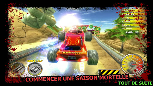 Le monde a été changé, les voitures de la mort ont été légalisées et le tir au volant semble différent. Vous pouvez écraser vos adversaires avec de nombreux types de canons intégrés sur votre voiture. Détruisez vos rivaux voitures de course ou ils vous obtiendrez à la place. Testez-vous dans simulateur d'arène de course de la mort furieux dans la profession de coureur de la mort. Découvrez 25 épreuves de courses étonnantes tout en participant à la compétition avec d'autres coureurs qualifiés. Vous recevrez des messages et des invitations à participer à la course. Gagnez de l'argent, mettez à niveau votre voiture de la mort avec des modifications de moteur, nitro, blindage, des pneus, des roquettes ou tout simplement acheter de nouvelles voitures de la mort pour participer aux courses d'élite. Déplacer vers le haut dans le classement de la table de score élevé en ligne pour devenir le meilleur des meilleurs coureurs de la mort.