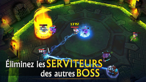 Mettez en déroute des guildes de héros qui tente de voler vos trésors. Sauvez d’autres mini Boss de ces raids d’aventuriers. Éliminez les donneurs de quêtes dans leurs villes afin qu’ils n’envoient plus de nouveaux aventuriers vous déranger. Il est temps de reprendre les donjons, maintenez votre territoire et devenez le Boss de raid ultime dans tout le royaume!