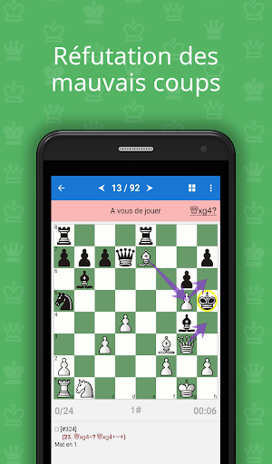 L’application fonctionne comme un entraîneur en vous proposant des exercices à résoudre et vous aide si vous n’y arrivez pas. Il vous donnera des indices, des explications et vous montrera même les coups de réfutation aux erreurs que vous pourriez faire.