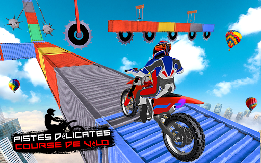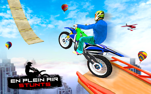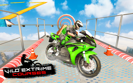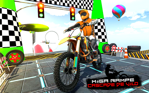 Les jeux de moto sont le défi du vélo acrobatique qui vous donne la chance de vous prouver un cycliste intense et un maître cascadeur. Bike impossible stunt real racing games est un mode passionnant pour accomplir une mission de vélo impossible dans ces jeux de simulation de vélo. Mega Ramp Bike Impossible Stunt vous offre des cascades en plein air pour l'excitation de Bike Rider. Chaque niveau est plus étonnant et difficile que l'autre dans ce jeu de simulation de vélo. Votre objectif est de conduire votre moto et d'effectuer un Bike Stunt dangereux pour atteindre le meilleur objectif de temps pour toujours. Prouvez que vous êtes le meilleur Bike Rider et Stunt Master.