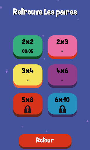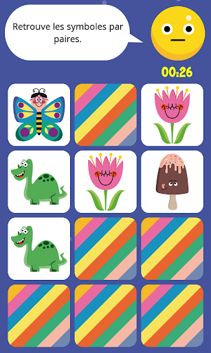 Sur 3 niveaux de difficultés, il s’agit de faire correspondre les différents paires de cartes.