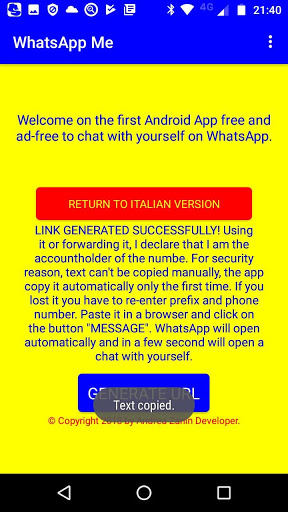 Commencez une discussion gratuitement avec vous-même sur WhatsApp.