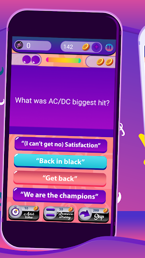 Si vous aimez la compétition, collectez des pièces pour être le meilleur sur le classement. Cinq niveaux de difficulté dans les jeux de quiz de musique. Reconnaître les membres du groupe en mode image - vous connaissez les chanteurs, mais connaissez-vous les bassistes? Connaissez-vous des mots de chansons? Devinez le chanteur de célébrités! Trouvez la bonne réponse aux questions sur les chanteurs des années 60, 70 et 90! Des jeux addictifs gratuits et sans wifi! Pratiquez la mémoire avec des jeux de puzzle de connaissances musicales! Organisez un jeu avec des amis et testez vos connaissances générales. Vous obtenez 5 choix dans ce quiz amusant! Choisissez le bon et complétez votre test de connaissances musicales! Quelle est votre "catégorie musicale" préférée?