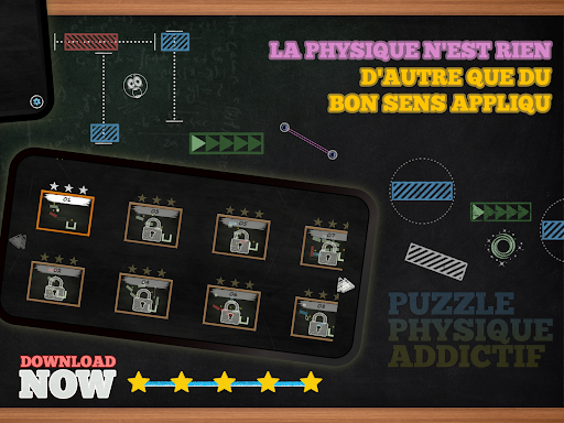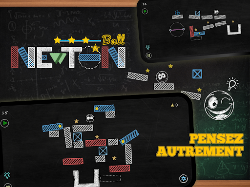 Le but du jeu est simple : collecter toutes les étoiles et faire en sorte que la balle de Newton atteigne le panier en utilisant une logique physique simple.