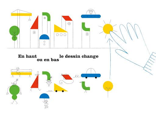 Surprise quand on retourne la tablette, notre tableau passe en format portrait. La gauche et la droite deviennent le haut et le bas. Tout est chamboulé et une autre scène se dévoile dans une musique douce créée par la foule de dessin qui s’anime sous nos yeux.