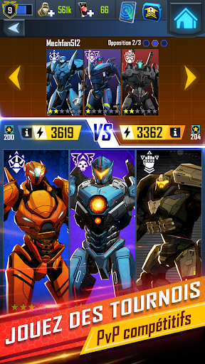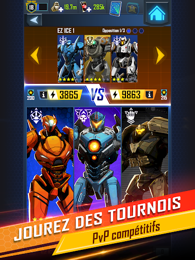 RIVALISEZ avec d’autres joueurs dans des Tournois Joueur vs. Joueur pour remporter des récompenses pour votre Shatterdome et les Groupes d’attaque Jaeger.