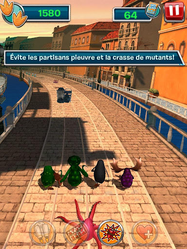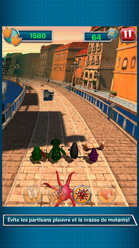 • Évite les partisans et la crasse des mutants! — Teste ta formation tandis que tu bats la pieuvre partisane et évite la crasse qui transforme en mutant. Si tous les Pingouins se changent en mutants, le jeu se termine!