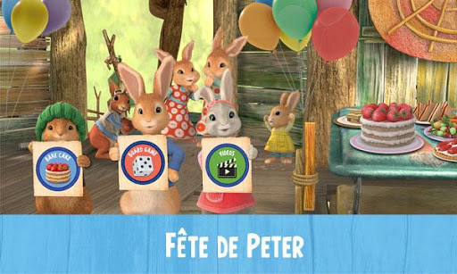 Complétez tous les jeux et allez à la cabane de Peter Rabbit, où il vous attendra avec tous ses amis pour célébrer une grande fête. À la fête de Peter, vous pouvez faire un merveilleux gâteau d’anniversaire pour lui, jouer avec ses amis à Serpents et échelles, ou regarder les épisodes des dessins animés de Peter.
