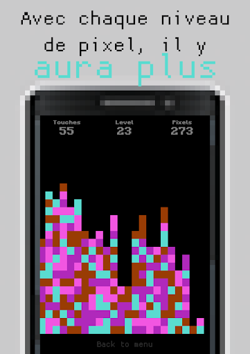 Vous devez cliquer sur les pixels et ils vont disparaître, mais tout n'est pas si simple. Vous devez passer les niveaux le moins possible en touchant l'écran. De plus, les pixels à chaque niveau deviendront de plus en plus nombreux.