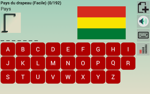 Catégories: "Capitale du pays", "Pays du capital", "Pays du drapeau", "Proverbes".