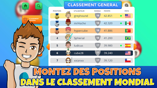 • Système de niveau: augmentez votre niveau avec chaque partie jouée pour améliorer votre position dans le classement mondial et mensuel de chaque jeu.
