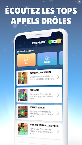 - Écouter à des pranks drôles envoyés par autres utilisateurs !