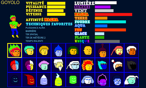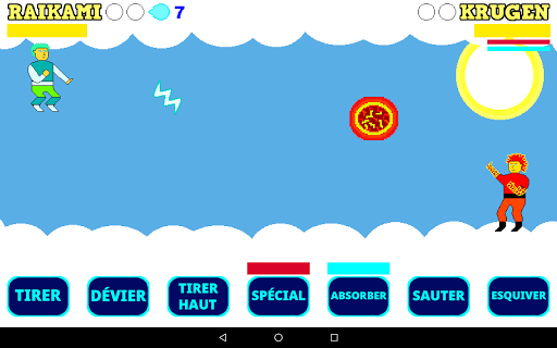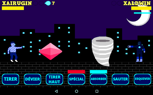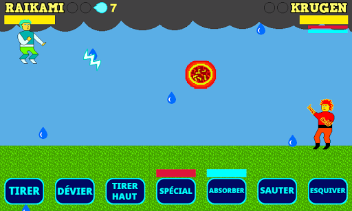 Combattant de Projectile est un jeu d'arcade stimulant dans lequel vous choisissez parmi une variété de personnages uniques avec de multiples capacités pour vous battre contre des personnages lors d'une bataille de projectiles. Combattant de Projectile est comme un jeu de combat, mais ce sont les projectiles qui déterminent l'issue d'un match. Les combattants utilisent ces éléments comme projectiles : lumière, obscurité, vent, magma, terre, éclairs, eau, feu, glace, plante et unique. Unique s’applique aux projectiles ne relevant d’aucun des autres éléments. Tous les éléments, à l'exception d'unique, ont un élément auquel ils sont faibles et un élément qu'ils contrent. Tous les personnages ont une affinité qui détermine leur élément le plus fort, les éléments auxquels ils résistent et les éléments qu’ils peuvent absorber. Les combattants utilisent des techniques de base pour lancer des projectiles dans différentes directions (horizontalement ou verticalement vers le haut en position debout et en diagonale vers le bas en sautant) et ils se défendent en déviant, évitant, sautant par-dessus ou en absorbant les projectiles. Les combattants utilisent aussi des techniques spéciales pour attaquer, se défendre ou s’améliorer. Tous les personnages peuvent utiliser n'importe quelle technique, mais ils sont plus enclins à utiliser leurs techniques préférées. Lisez le manuel pour avoir plus d'infos sur les mécanismes, les techniques et la terminologie associés au jeu. Combattant de Projectile dispose d'une bande-son de 7 pistes. Voici les différents projectiles : énergie lumineuse, vortex sombre, tornade (vent), boule de magma, météore (la terre), foudre, boule d'eau, boule de feu, pic de glace, feuille (plante), bois (plante), énergie ki, diamant, faisceau énergétique, faisceau oculaire, onde de choc, shuriken, énergie crépusculaire, vortex crépusculaire, étoile. Voici les différents personnages : normaux, androïdes, mages, épéistes, ninjas, hybrides, extraterrestres et divinités. Voici les différentes scènes et leur composition: Lumineuse - ciel céleste, des nuages et un soleil éclatant. Sombre - ville de nuit avec des gratte-ciel et une lune ou un croissant de lune. Vent - pré et tornade géante. Magma - volcan plein de lave qui entre constamment en éruption. Terre - zone rocheuse avec de grandes montagnes. Foudre - pluie et éclairs. Eau - cascade. Feu - flammes bleues. Glace - neige, sol glacé, montagnes et pins. Plantes - forêt verte pleine d’herbe et d’arbres. Unique - espace extérieur, sol arc-en-ciel, corps célestes, planètes, trou noir, lune, soleil et plein d'étoiles. Combattant de Projectile est un jeu très difficile qui nécessite de bons réflexes, de la patience et de la concentration pour réussir.