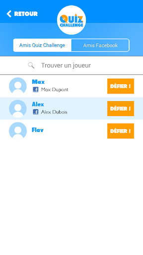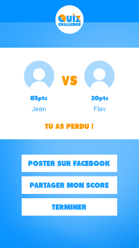 * Lorsque tu lances un défi ou que tu en acceptes un, ton adversaire et toi-même n’avez pas besoin d’être connectés à Quiz Challenge en même temps. Lorsque le premier a terminé la partie, son score est partagé à son adversaire, qui va devoir répondre exactement aux mêmes questions. Qui sera le meilleur ?