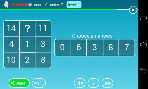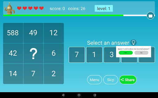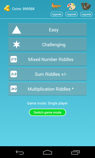 1. Math riddles for k-4, engaging the player in practicing simple math (addition, substruction, multiplication, division) while playing the game.