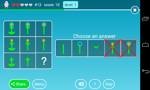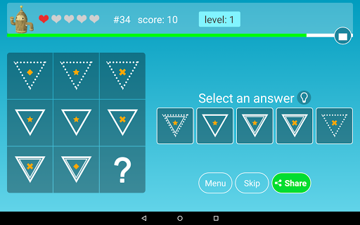 Riddles, visual logic puzzles with shape and color and brain teasers. Develop logical problem solving skills while enjoying the game with friends and family.