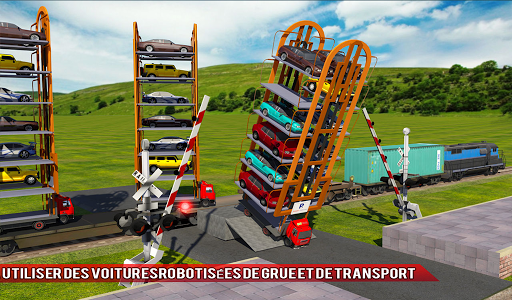 Montrez une dextérité irréprochable dans les camions de transport tout en conduisant des voitures musclées hybrides et transportez-les dans un simulateur de transport ferroviaire futuriste. Autobots de l'espace sont sur terre et la guerre civile fait rage contre la transformation du super robot. Transporter les robots du futur quartier général vers la base de l'armée. Actionnez une grue rotative pour trouver une place de stationnement vide pour la voiture de police, puis dirigez la grue vers la grue en direction de la gare de fret. Chargez un guerrier mech et un robot sur un train de transport avec une voiture intelligente qui peut se transform en robot de guerre civile. Si vous aimez la transformation du train de locomotive, alors ce simulateur de transport de train robot de transformation de voiture est le dernier arrêt pour vous.