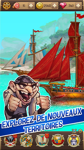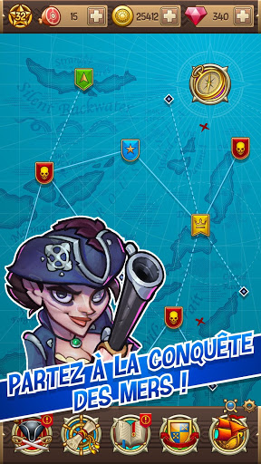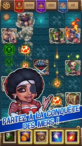 Vous voulez devenir un vrai capitaine ? Commencez par avoir un bon équipage ! Recrutez les plus impitoyables et les plus forts des pirates pour régner sur les mers. Chaque pirate a son propre caractère et des compétences uniques. Entraînez vos héros et transformez-les de mousses novices à loups de mer aguerris, et devenez un capitaine puissant et respecté. Régnez sur toutes les mers ! Utilisez et combinez les compétences de votre équipage pour franchir tous les niveaux, énigmes, écueils et dangers !