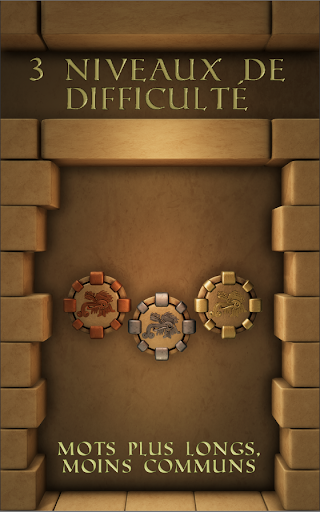 -3 niveaux de difficulté : Bronze, Argent et Or (mots plus longs, moins communs, modes plus rapides, etc.)