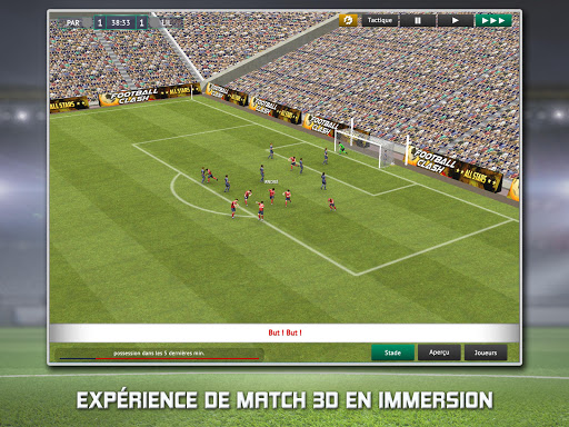 * Une expérience de jour de match en immersion: Suivez le développement de l'action sous vos yeux dans un environnement 3D. Analysez les performances de votre équipe lorsque vos joueurs suivent leurs instructions individuelles et collectives. Réagissez à vos adversaires en opérant des changements tactiques à la poursuite du but gagnant.
