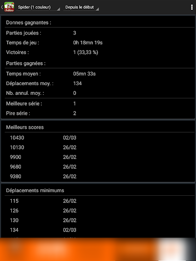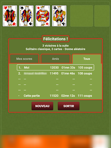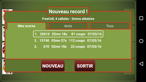 A chaque fin de partie découvrez vos meilleurs scores personnels, mais aussi votre classement en ligne parmi vos amis, et tous les joueurs de Solitaire Andr !