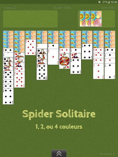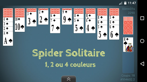 - Spider Solitaire : 1 / 2 / 4 couleurs