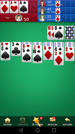 Arène et tournoi - Les tournois en direct avec 1 carte ou 3 options de cartes vous apportent un match passionnant. Les participants au tournoi ont les mêmes cartes avec le même ordre. Le mode multi-joueurs prend en charge les options 2 joueurs et 4 joueurs. Les participants au tournoi peuvent voir les fondations des adversaires avec des scores en temps réel. Les participants ont jusqu'à 3 chances d'utiliser la magie / indice par partie. Le joueur réclame des cadeaux magiques journaliers.