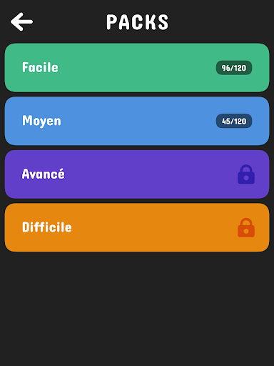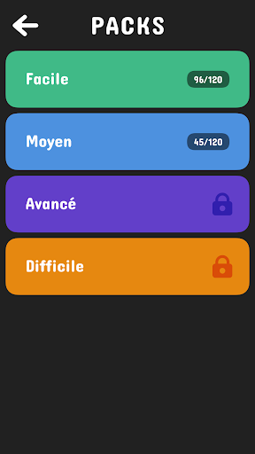 Au fur et à mesure que vous avancez dans le jeu, votre capacité de raisonnement logique s'améliorera et le jeu deviendra de plus en plus facile pour vous. Si, au plus haut niveau de difficulté, vous estimez que ce jeu est devenu assez facile pour vous et que vous pouvez honnêtement y jouer jusqu'à son terme, acceptez alors toutes nos félicitations car cela signifie que vous avez obtenu des résultats incroyables dans votre entraînement logique et que vous pouvez passer à des casse-têtes plus difficiles.