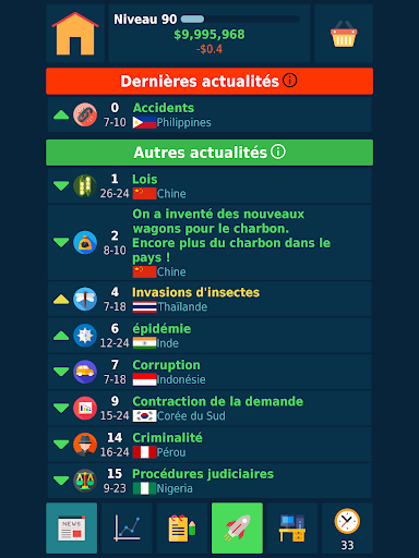 Le "Jeu de bourse" est la seule stratégie économique au monde, calquée sur les milliers d’événements mondiaux. Examinez les nouvelles boursières et leur influence sur les cotations. Vous ne devinez pas, mais vous savez exactement où le prix ira ensuite. Des millions de combinaisons complexes rendent le jeu unique et exceptionnel à chaque coup.