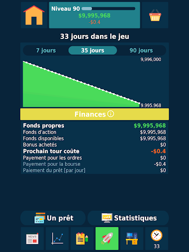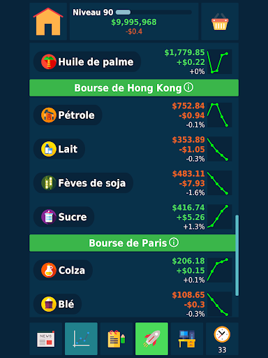 C’est un jeu dans lequel vous vous développez. Vous entraînez la vigilance, la mémoire et l’esprit analytique. Vous voulez devenir un vrai trader! Ce jeu vous apprendra à ne pas avoir peur de trader en bourse, parlera des finances et des investissements, préparera à un vrai trading sur la bourse Forex.