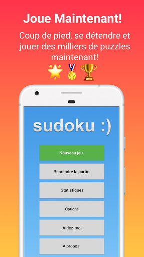 Sudoku :) est le jeu de puzzle logique classique japonais avec des chiffres. Jouer à des niveaux plus faciles à exercer votre cerveau ou vous mettre au défi avec un expert / difficulté avancée pour donner à votre esprit une vraie séance d'entraînement. Sudoku sur mobile est tout aussi bonne que avec un crayon et du papier afin de prendre votre jeu préféré partout où vous allez.